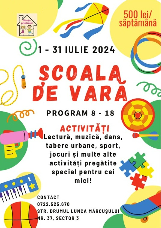 11:00 – 13:00 – Ateliere tematice, recapitularea materiei școlare, efectuarea temelor și completarea caietului special de vacanță cu cadru didactic specializat, concursuri, jocuri de echipă, arts & crafts etc.